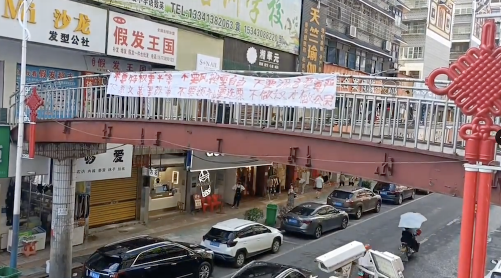 Protest banner against Xi Jinping in China calls for freedom and democracy